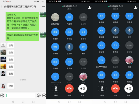 两个教工党支部和两个学生党支部于3月23日至27日也分别召开党员大会,以学习强国会议形式开展了支部书记讲党课活动。党课结束后,各支部书记还分别领学了省委组织部《关于发挥共产党员示范带头作用 推动形成文明健康、绿色环保生活方式的倡议》并对疫情期间,深化支部“两化一创”、持续开展党员个人学习充电、党费缴纳等事宜进行安排和部署。