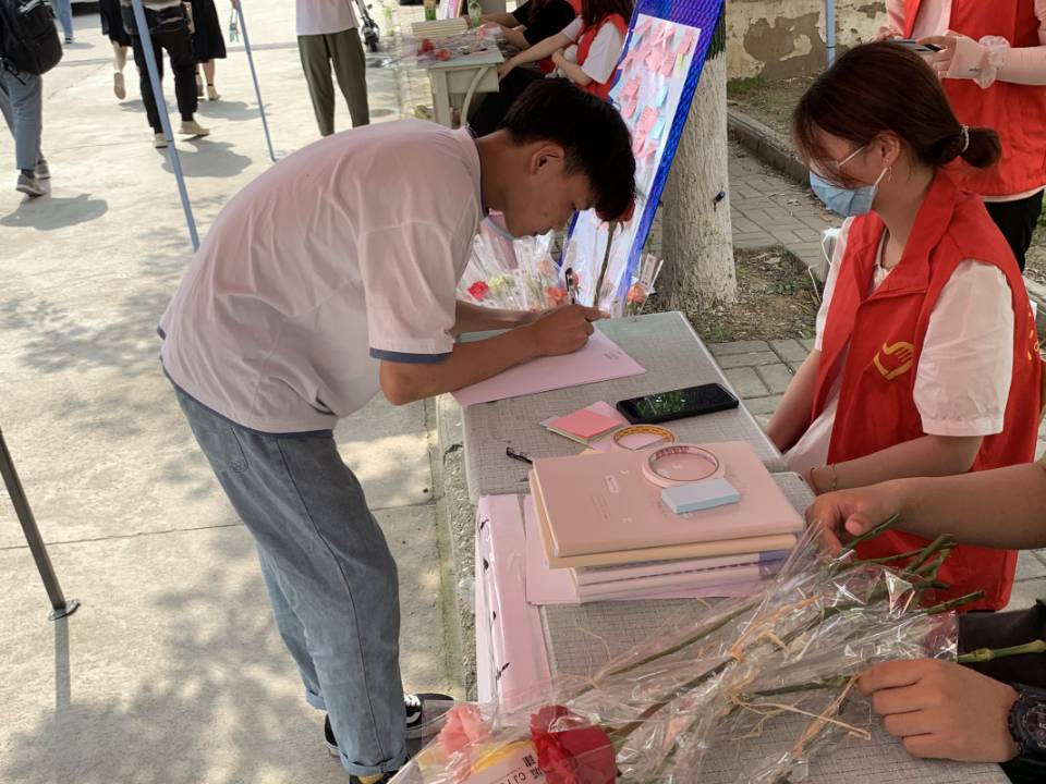 母亲节是一个歌颂母爱的日子,也是一个感恩的日子。很多时候,我们心怀感激,却不曾说出口。趁此时节,表达出心里的爱与思念。活动开始前,工作人员认真准备,绘制板报、制作横幅、采购鲜花以及活动过程中需要的帐篷等物品。活动过程中,志愿者们向同学们积极进行宣传,吸引了同学们的踊跃参与,一些同学向母亲发送语音祝福,给母亲送上节日的礼物,也有一些同学在明信片中写下“祝母亲永远开心,幸福爆棚”这样的美好祝福。同学们还积极用便利贴在展板上写下给母亲的三行情诗,情意满满。不论是语音中的真情流露,还是明信片、三行情书中的深情祝福,都表达了同学们对母亲的感恩之心,赤子之情,从而让今年的母亲节充满了浓浓的爱意,满满的祝福,深深的亲情。
