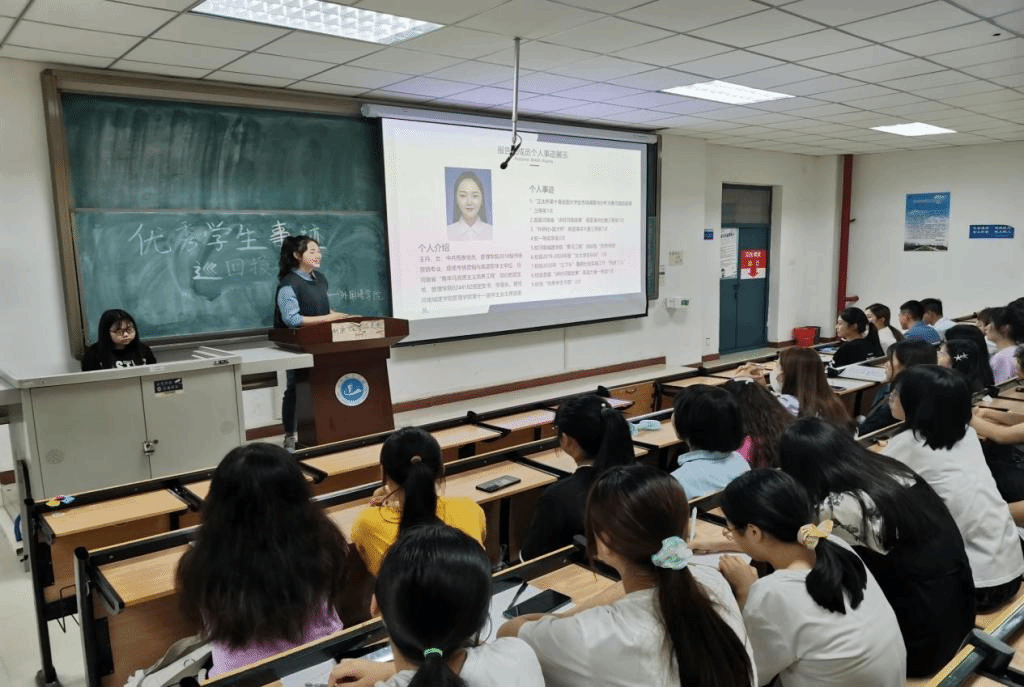 本次“青春榜样”报告团成员分别是来自城市建筑与规划学院、能源与建筑环境工程学院、艺术设计学院和管理学院的五位优秀学生代表。城市建筑与规划学院的16级学生张喻魁在校期间学习刻苦,成绩优异,获得了城乡规划与英语双学位。张喻魁向学弟学妹们分享道:“大学不是养老的地方,而是拼搏的地方”,表达出了他对大学生活的态度。能源与建筑环境工程学院的郭小雨分享了自己在大学期间积极参加各类比赛以及荣获佳绩的故事。“高效”是她获得各项荣誉的关键。艺术设计学院的贾芳婷于今年以优异的成绩顺利考入首都师范学院进行深造,三天只睡十个小时是她对考研的态度,贾芳婷跟同学们分享了她的人生格言:“自律者方得自由”。管理学院的18级学生岳少辉和王丹也作为报告团成员讲述了他们参与“第四节全国大学生城市管理”大赛和“青马工程”的奋斗学习历程,生动有趣而不乏教育意义,让在场的同学们受益匪浅。