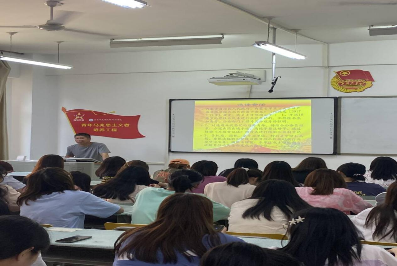 首先,王艳杰老师向同学们介绍了大学生应征入伍的具体要求和优惠政策,以及大学生参军所必需的身体、意志力等方面的要求。接着,王老师向大家讲述了征兵的意义以及大学生入伍的相关优惠政策,调动学生报名应征的积极性,强化同学们服兵役的责任感和参军保卫祖国的意识,并鼓励大家积极报名应征入伍。同时,王老师也详细解读了大家最为关心的大学生征兵入伍安置、学业优待、经济补助等相关政策法规。通过王老师的宣讲,我院学生对应征入伍是光荣且为国家履行兵役义务有更好的认识,并清楚地了解国家针对征兵入伍制定的相关优抚优待政策。
