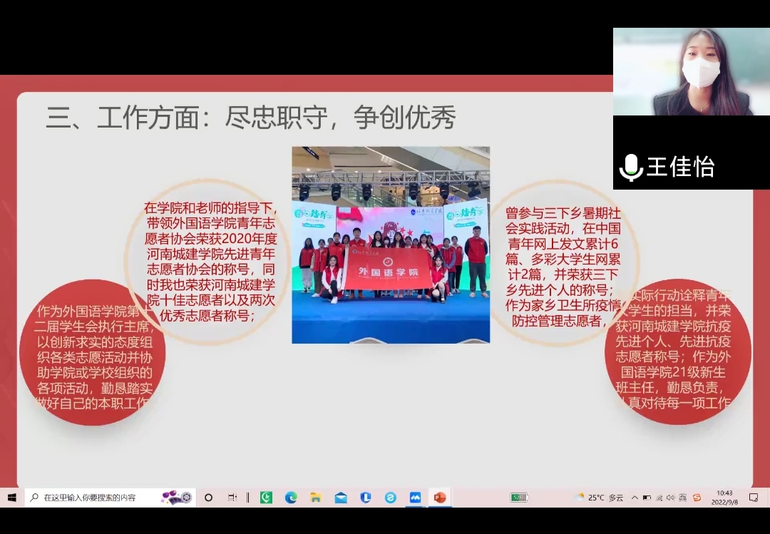 (王佳怡同学向新生讲解自己的社会实践经历)