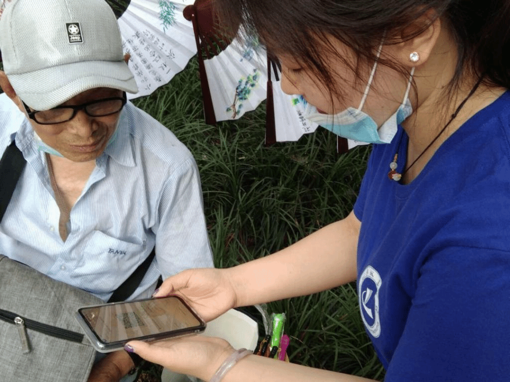 实践团成员主要在公园、小区公共休息区等老年人聚集地开展实践。在实践过程中,成员们认真询问老人们在使用手机过程中存在的困惑,例如出示健康码行程码、查询核酸报告、查询手机套餐使用情况、使用微信进行视频电话等日常生活中常用操作,并耐心向老人们进行操作演示,帮助老人自己使用操作。