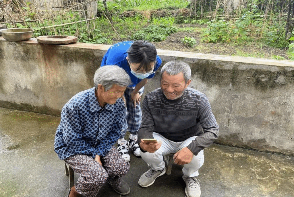 (图为团队成员和村民共同观看反诈骗宣传片)