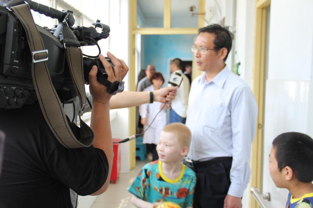 在孤儿院,老师和志愿者们首先将婴儿手推车、奶粉、爽身粉、卫生纸、洗衣液等生活用品给孤儿院工作人员,随后,将装着适合每个孩子的衣服、鞋子的礼物送给每个孩子手里,并亲手帮他们穿上。之后,老师和志愿者们一同和孩子们表演节目、做游戏。因为志愿者们的到来,孤儿院的气氛变得十分活跃,大多数孩子不能用语言表达,但是他们的脸上洋溢着开心的笑容。