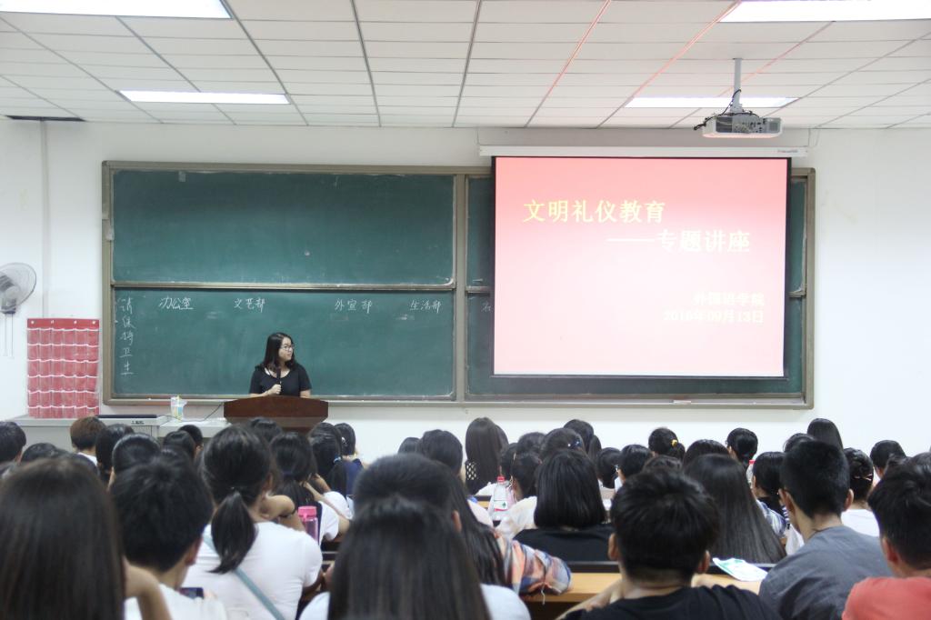 (通讯员 田果果 刘航园)为加强校园文明建设,提高我院学生的文明礼仪素养,吃瓜网黑料爆料视频在线特于9月13日晚8:00在文管校区一号教学楼528开展了文明礼仪教育活动,全体大一大二学生参与活动。