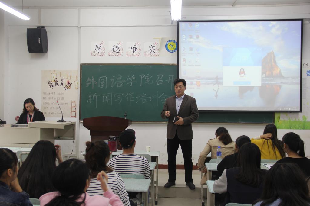 培训会正式开始前,于修涛首先对张溪孱作了简单介绍并对张溪孱的到来表示欢迎。培训会上,张溪孱根据自己工作经验,通过新闻案例,向大家介绍了新闻写作规范、新闻特点、写作方法及照片要求。她强调,新闻写作一定要坚持严肃认真的态度。培训会最后,于修涛希望同学们从培训会吸取经验,提高自身新闻写作水平。