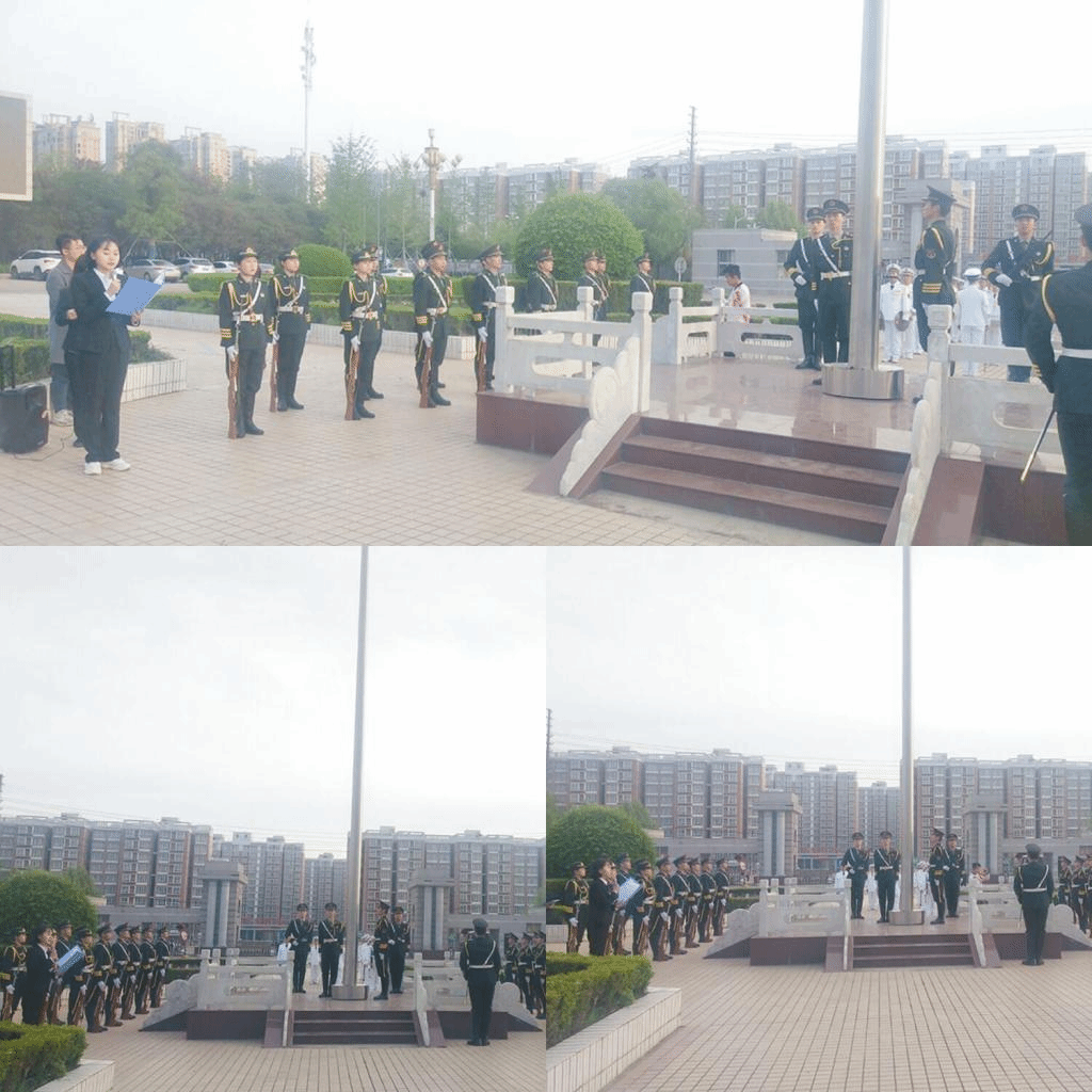 早上七点钟,学校的国旗护卫队成员,着装整齐统一,伴随着《义勇军进行曲》,迈着矫健有力的步伐,带着鲜艳夺目的五星红旗走到旗杆下。全场庄严肃穆,全体同学齐唱国歌,向国旗行注目礼,国旗在音乐声中缓缓升起。升旗仪式结束后,优秀学生代表进行国旗下的讲话,主题是纪念英雄、尊崇英雄、敬畏为祖国作出贡献的时代人物。讲话结束后,全体学生向国旗宣誓,升旗仪式圆满结束,大家有序离开。