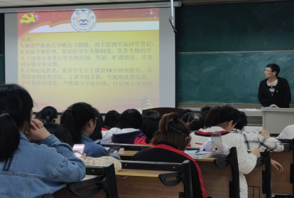班会首先强调大一全体学生早晚自习的相关事项,要求大一全体学生保证早晚自习不迟到,不早退,并要求班长和纪律委员切实做好督促提醒工作,把早晚自习的出勤情况记录好。接着讲述了各位同学应该积极主动和辅导员老师进行沟通交流,把平时所遇到的问题以及想法及时反馈。最后辅导员要求学生要在上课前10分钟到教室,认真对待每一节课,保持不旷课不迟到,上课不玩手机,不吃零食。