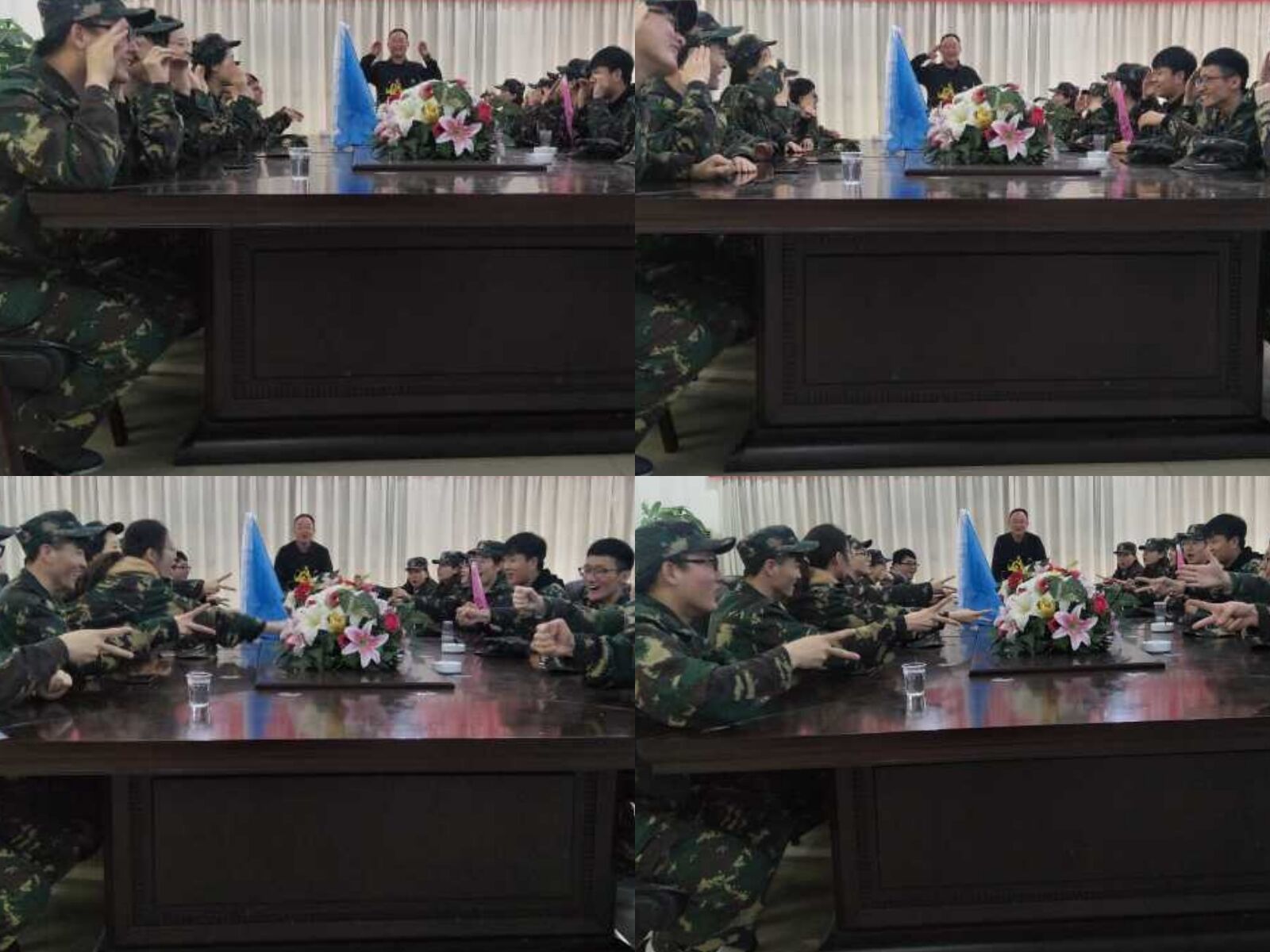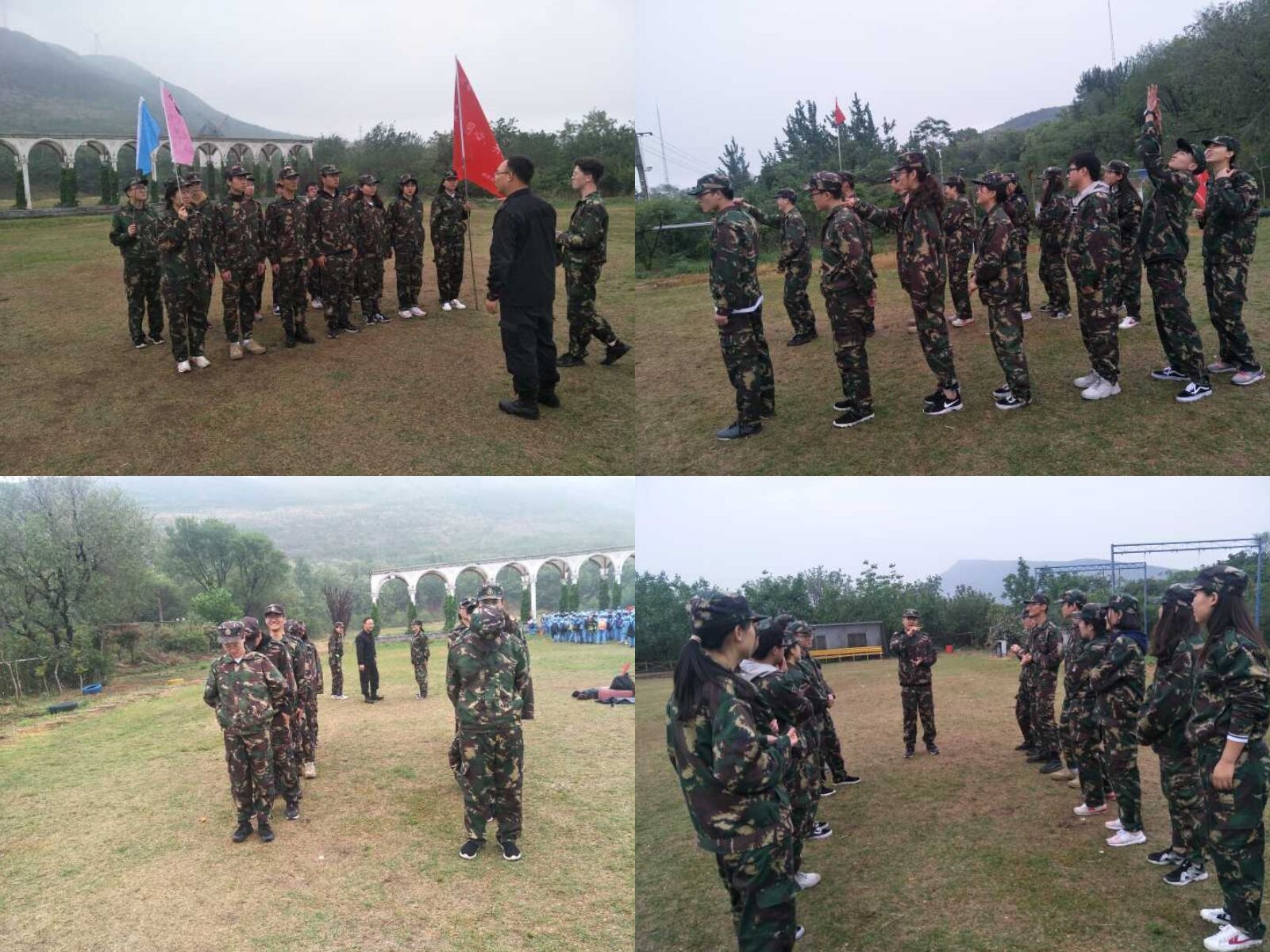 此次素质拓展训练活动以运动为依托,以活动为主要训练方式,以参与者切身感悟为主要目的,少了一些言谈和说教,多了一些体会和感悟。举行的活动主要有:给自己加油鼓励、礼貌问候队友、给队友敬礼、训练站姿和队形、制作团队的旗帜、看图片猜数字、通过肢体语言传递密码、掀纸牌排顺序。素质拓展训练活动在轻松愉快的活动中结束。