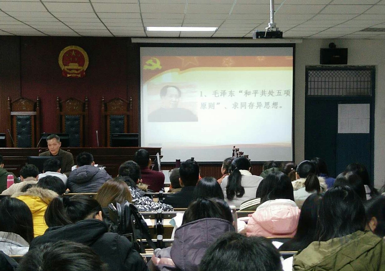 (通讯员 张换成)为进一步把学习宣传贯彻党的十九大精神引向深入,积极推进党的创新理论成果的“三进”工作,按照校党委的部署,12月13日下午,吃瓜网黑料爆料视频在线联合法学院、数理学院共同邀请校十九大宣讲讲师团成员陈振国博士在文管校区121多媒体教室作学习贯彻党的十九大精神辅导报告。我院党总支书记袁晓、院长秦平新和法学院、数理学院相关领导及三个学院全体教师党员、辅导员和学生党员参加了本次活动,报告由袁晓主持。