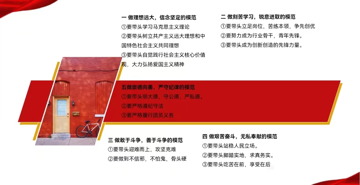 本次的团日活动分为两个部分。第一部分,主持人向同学们了介绍“五个带头,五个模范”的具体内容,让大家知道应该做一个什么样的模范,怎样成为一个好的模范,以及如何发挥好模范的带头作用。让大家对于模范有了更加准确地认知和了解。第二部分,主持人向同学们介绍了模范人物事迹,让大家了解到在新冠疫情的严峻形势下,有这样一群人在默默地付出。这些模范的事迹可学可做,他们的精神可追可及。他们的模范带头作用鼓舞了同学们学习模范,争做模范的信心和热情。