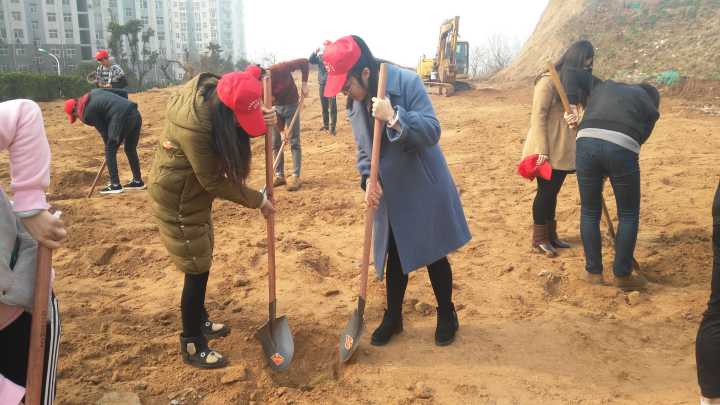 在活动现场,志愿者们分成若干小组,分工明确,有秩序地加入植树活动的行列中,大家手持铁锹,干劲十足,将一棵棵充满生机和希望的树苗植入到土中,为树苗浇水灌溉,志愿者们看着这些新树苗倍感欣慰。最后,志愿者与树苗合影留念,此次活动圆满结束。