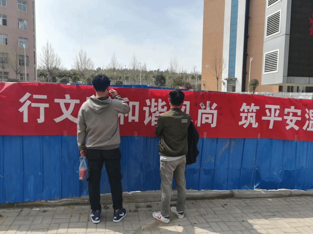 上午11点开始,志愿者就悬挂上“行文明和谐风尚 筑平安温馨家园”的红色条幅,吸引了众多同学的目光。此时正当艳阳高照,但这也丝毫没有阻挡同学们参与活动的热情。同学们纷纷在条幅上签名,表明自己履行承诺的决心。在活动过程中,志愿者积极宣传建设平安校园的活动主题,在广大同学中间营造出了“建平安校园,做文明学生”的良好氛围。