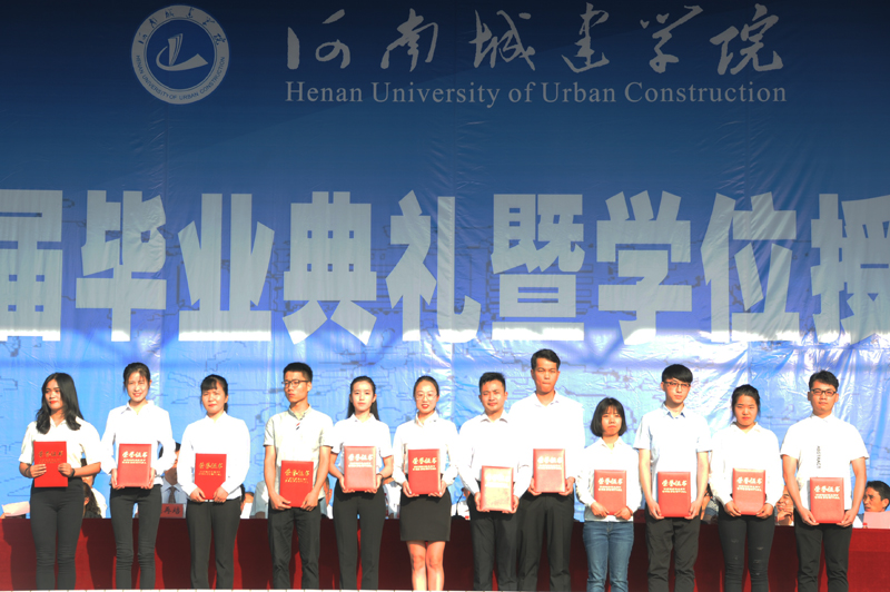 典礼上,党委副书记张坤书宣读了《河南省教育厅关于表彰2018年河南省优秀应届大中专毕业生的决定》和《河南城建学院关于表彰2018届优秀应届毕业生的决定》;副校长梁再培宣读了《中共河南城建学院委员会关于表彰优秀基层党组织、优秀共产党员和优秀党务工作者的决定》;副校长赵金安宣读了《河南城建学院关于授予陈芬芬等4775名学生学士学位的决定》。与会校领导分别为省、校级优秀应届毕业生代表和校优秀毕业生党员代表颁发了荣誉证书。最后,优秀毕业生及校友分别讲话。