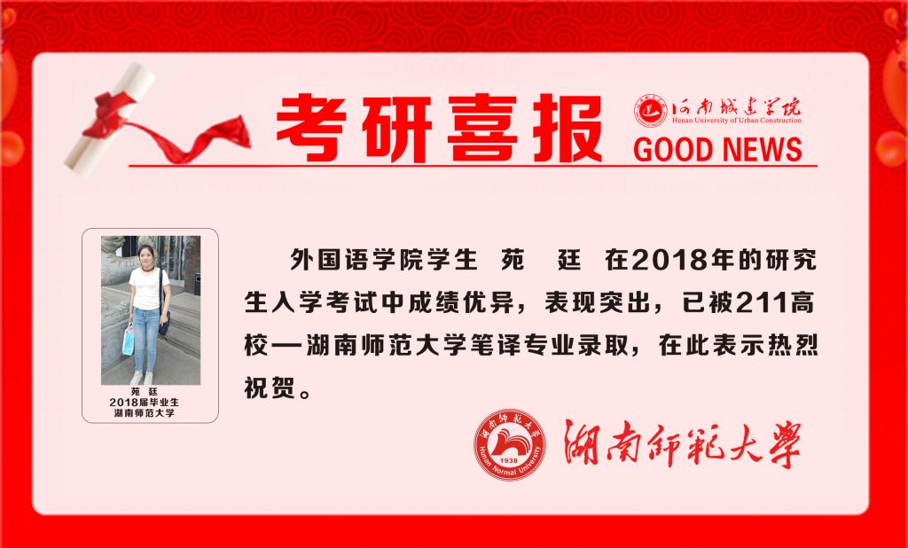 同学已成功被湖南师范大学笔译专业录取。