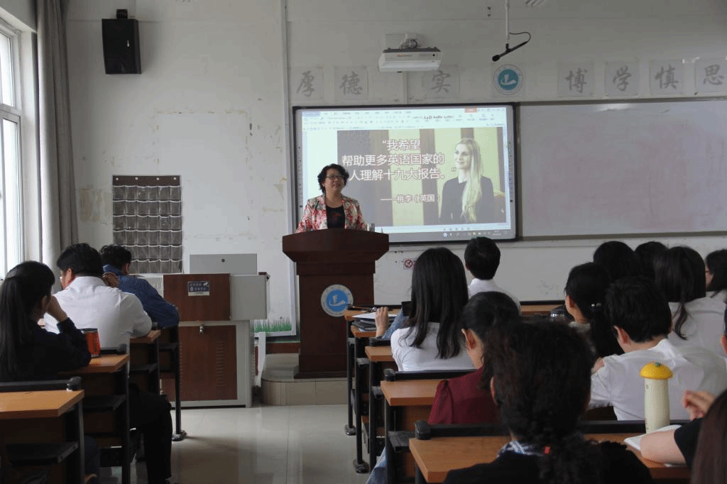 朱建祥首先总体上回顾了党的十九大报告的主要内容,随后结合外语专业特点从时代特色表达法的翻译、经典句子的翻译、语意补充、原文直译、具体概念抽象化、逻辑关系显化、人文情怀句妙意、句子重塑等多个方面生动解读了党的十九大报告英文版的内容。最后,朱建祥提出党的十九大报告大气磅礴、内容丰富,报告中一系列新思想、新论断、新提法、新举措受到广泛关注,其英文版经过中外专家、译者精心解读与翻译,无论内容还是形式同样精彩纷呈。作为党员、外语教育工作者和英语学习者,了解学习党的十九大报告英文表述非常有必要,对我们更深层次领会党的十九大报告精神,指导学生学习有关中国故事的英文表达进而更好地向全世界讲好中国故事极其有益。