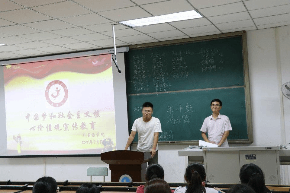 宣讲会上,田果果就“中国梦”的概念、发展历程、意义等方面开讲,深刻剖析“中国梦”的主要含义,并对新生提出了实现这一目标的要求,不断学习新知识,坚定理想信念,发挥模范精神。接着,秦平新对社会主义核心价值观进行详细解读,“富强、民主、文明、和谐”,是我国社会主义现代化国家的建设目标;“自由、平等、公正、法治”,是对美好社会的生动表述;“爱国、敬业、诚信、友善”,是公民基本道德规范,并希望全体学生用实践行动践行社会主义核心价值观。最后,同学们上台分享自己的感悟。