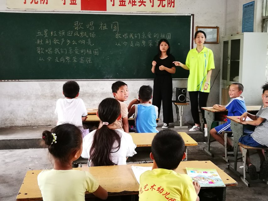 经过前期与该校孙校长沟通,了解到该校音体美教师匮乏。7月24日上午,我院三名志愿者前往西安良村中心小学开展第一堂音乐课。课前,志愿者准备了中英两首歌曲。课上,志愿者先将歌词板书在黑板上,并带领学生们一句一句跟唱,学生们也非常热情,英文歌曲有一定难度,志愿者非常耐心地教学生们,学生接受能力非常强,很快便掌握。最后学生一起合唱这两首歌曲。课后学生们纷纷表示:非常喜欢此类课程,希望以后能够多一些类似的课程。