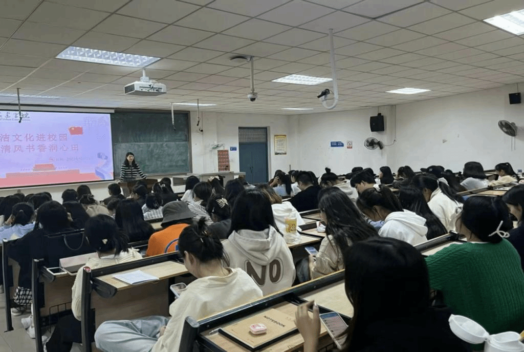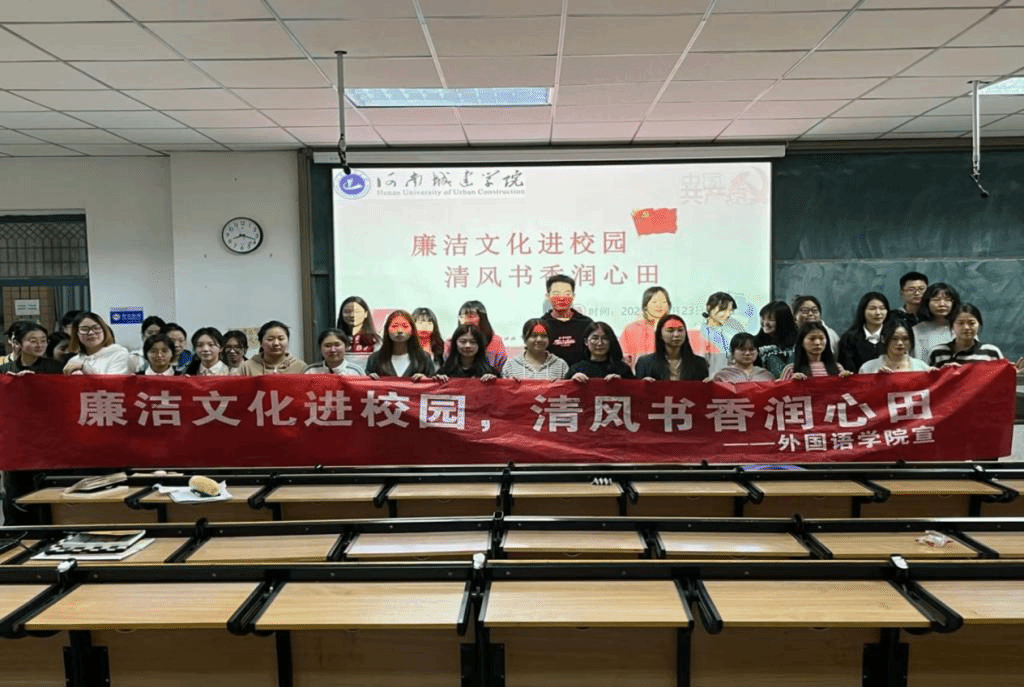 在此次宣传活动中,老师先讲解了廉洁文化的内涵,随后带领同学们一起观看相关廉洁视频《零容忍》,并与其他同学交换想法,进一步了解校规校纪。视频放映结束,老师对学生们的疑问进行解答。活动最后,同学们在“廉洁文化进校园,清风书香润心田”横幅标语上写下自己的名字,并和老师一起拍照留念。