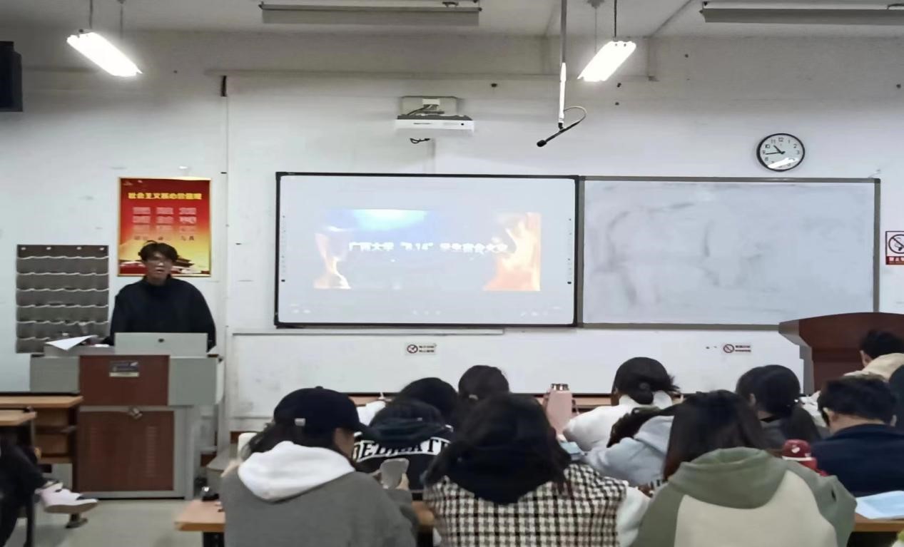 通过在教学楼下放置消防安全宣传展板,在学院入口处播放消防安全宣传视频,让学生了解消防知识;学院团学办主任靳真真带领学生干部排查消防设施,进学生公寓楼排查违章电器,学生干部讲解高校消防警示案例,提高学生消防安全意识和逃生自救能力,引导学生关注消防安全。