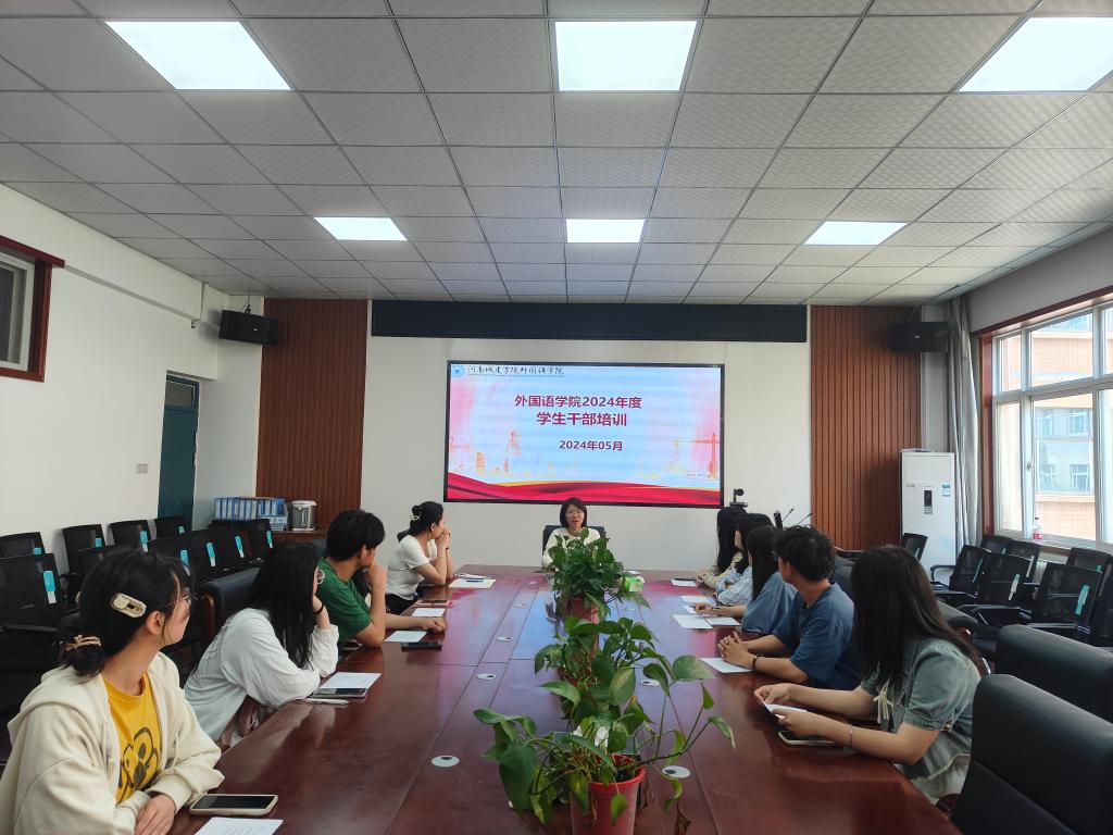 (通讯员:靳真真)为加强学生干部队伍建设,提高学生干部的整体素质和能力,5月10日,我院在306会议室开展学生干部培训,团学办主任靳真真主讲,大一至大三年级各班长参会。