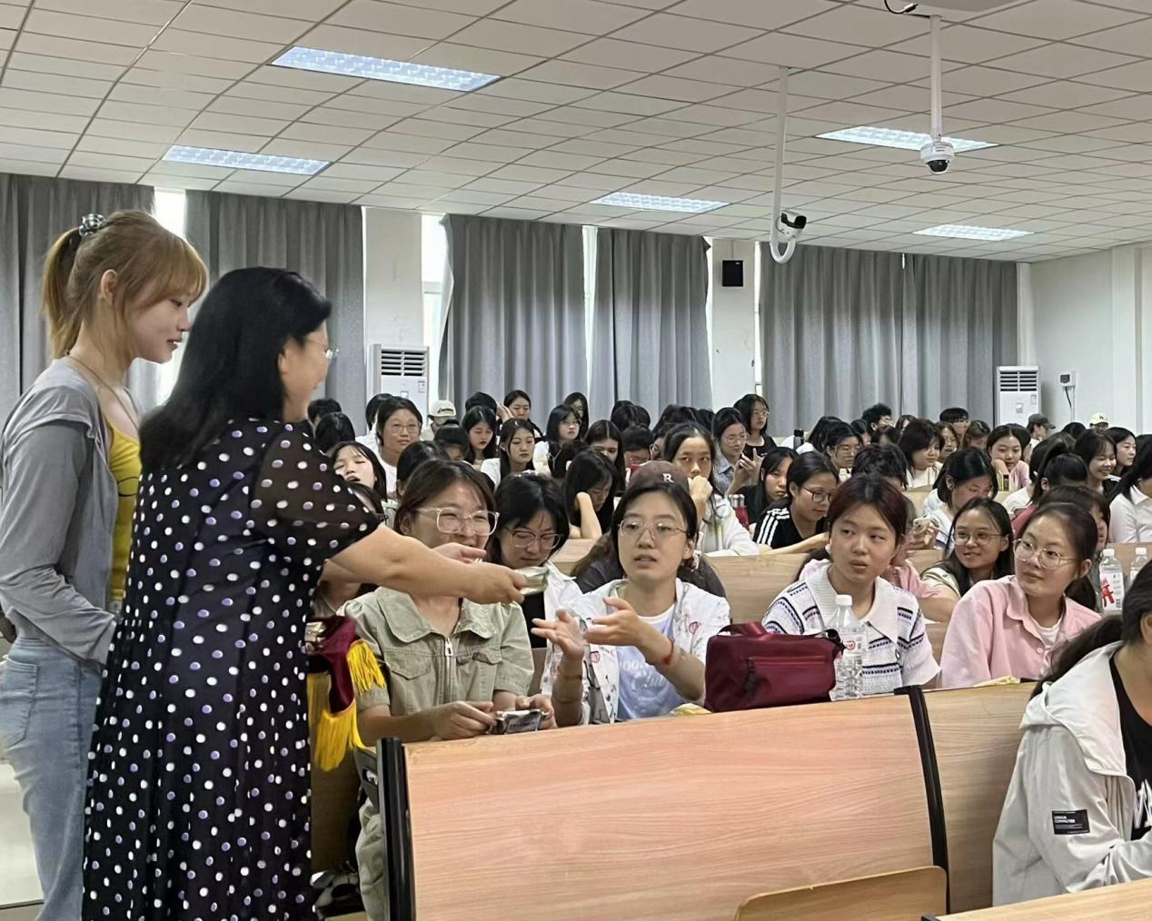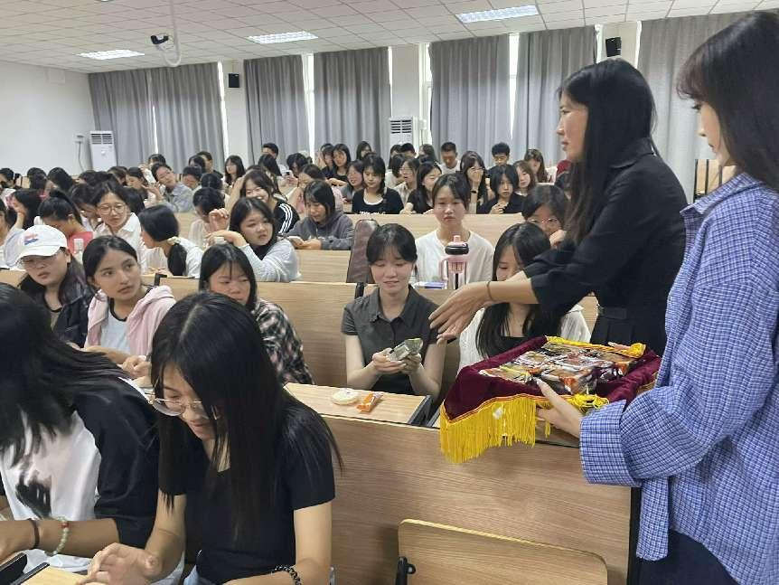 活动伊始,王宏代表学院向同学们致以节目的问候,传递了学院对每一个学生的深切关怀与期望。随后,学院领导们亲手将精心准备的月饼一一分发到同学们手中,让同学们感受到了浓浓的关怀与温暖。学院还精心安排了节目表演和游戏环节,歌曲、舞蹈等才艺表演轮番上阵,猜灯谜、你画我猜等游戏环节接连不断。现场掌声雷动,欢声笑语不断,洋溢着浓厚的节目氛围和师生间深厚的情谊。