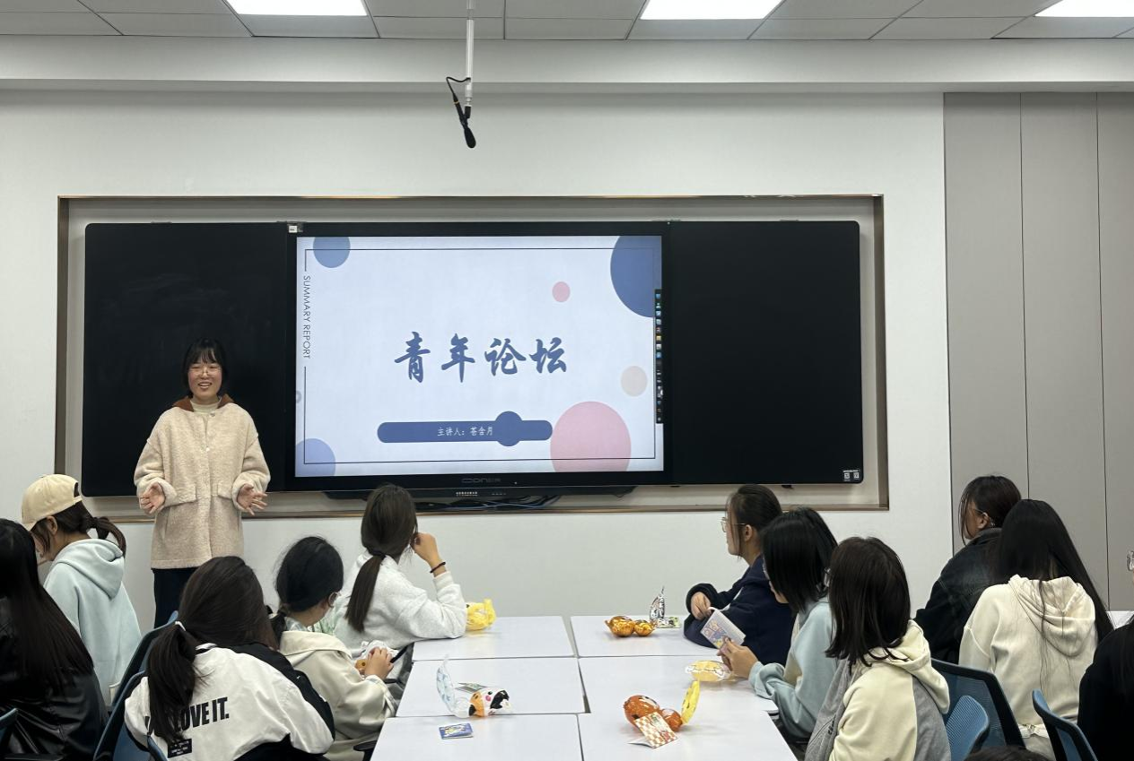 为发挥朋辈互助作用,我院于11月7日在美荟楼317教室举办第六期青年论坛活动,2023-2024学年国家奖学金获得者苍含月及2024级部分新生共40余人参加了活动。