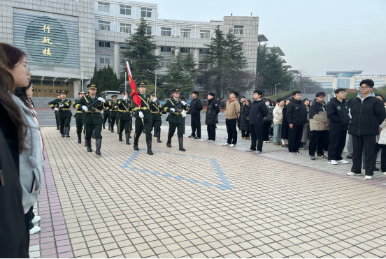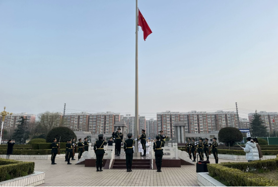 伴随着激昂雄壮的国歌声,鲜艳的五星红旗冉冉升起,迎风飘扬,全体师生肃立注目、奏唱国歌。升旗礼毕,由学生代表朱彦儒进行国旗下的演讲,分享自己的学习经验和大学生活的心得与感悟,引领全体新生珍惜时光,勇敢成长。