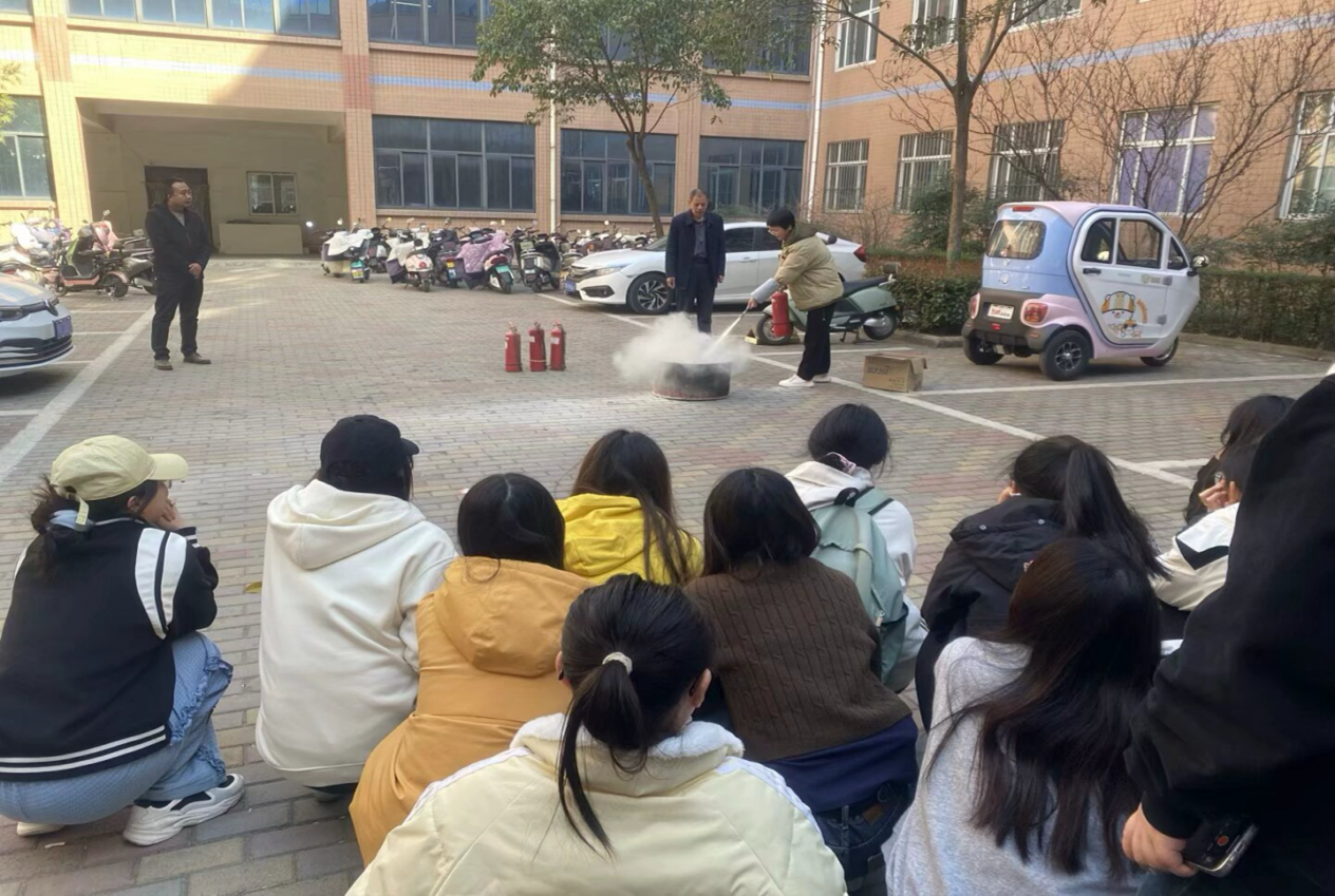 活动中,魏见岭向全院师生重点讲授高校易发生火灾场所火灾风险防范、火场疏散逃生方法、常用灭火设施使用和初起火灾处置方法等消防安全知识,牢记119消防报警电话。应急逃生演练环节,学生们在相关老师的指导下,按照“弯腰低姿、捂住口鼻”的指令,沿逃生路线有序撤离至楼下安全地带集合。最后,消防科人员在楼下集合点为学生讲解干粉灭火器的使用方法及操作注意事项,并进行实操演示。同时,邀请部分学生进行现场灭火演练,讲解操作要点,其他师生代表进行观摩学习,确保每位参与者掌握基本灭火技能。
