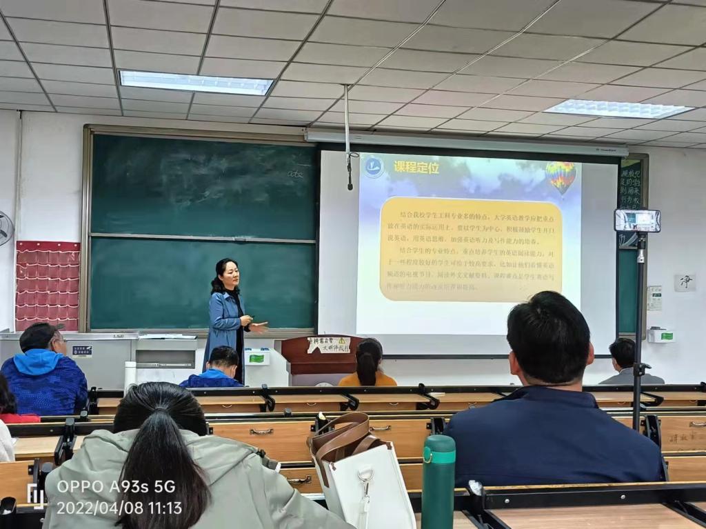 (通讯员 宋利强)为深入贯彻落实全国和全省教育大会精神,全面检视OBE理念在课程层面的实施效果,进一步引导广大教师参与教学改革的积极性、主动性和创造性,根据我校教务处(教师发展中心)发布的《关于开展“专任教师说课程”达标活动暨2022年课程教学创新大赛初赛工作的通知》文件精神和要求,大学英语第二教研室于4月8日在文学院教学楼122教室举行“专任教师说课程”达标活动。外国语学院副院长张换成、张凤琴、秦小锋出席本次“说课程”达标活动,外国语学院教师董星华、刘爱勤、王莉担任本次“说课程”达标活动的评委,大学英语第二教研室共16名教师参加本次活动。