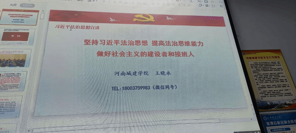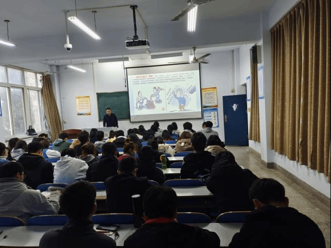 王晓永老师以“坚持习近平法治思想,提高法治思维能力,做好社会主义建设者和接班人”为题,为大家带来了一场精彩绝伦的法治宣讲。王老师用诙谐生动的语言带领大家一起学习了习近平总书记关于坚持中国特色社会主义法治道路的重要论述,并深刻分析了为什么要全面坚持中国特色社会主义法治道路。最后,王老师也勉励同学们,要珍惜时间,努力学习,积极向先锋模范人物看齐,为国家和社会贡献自己力量。