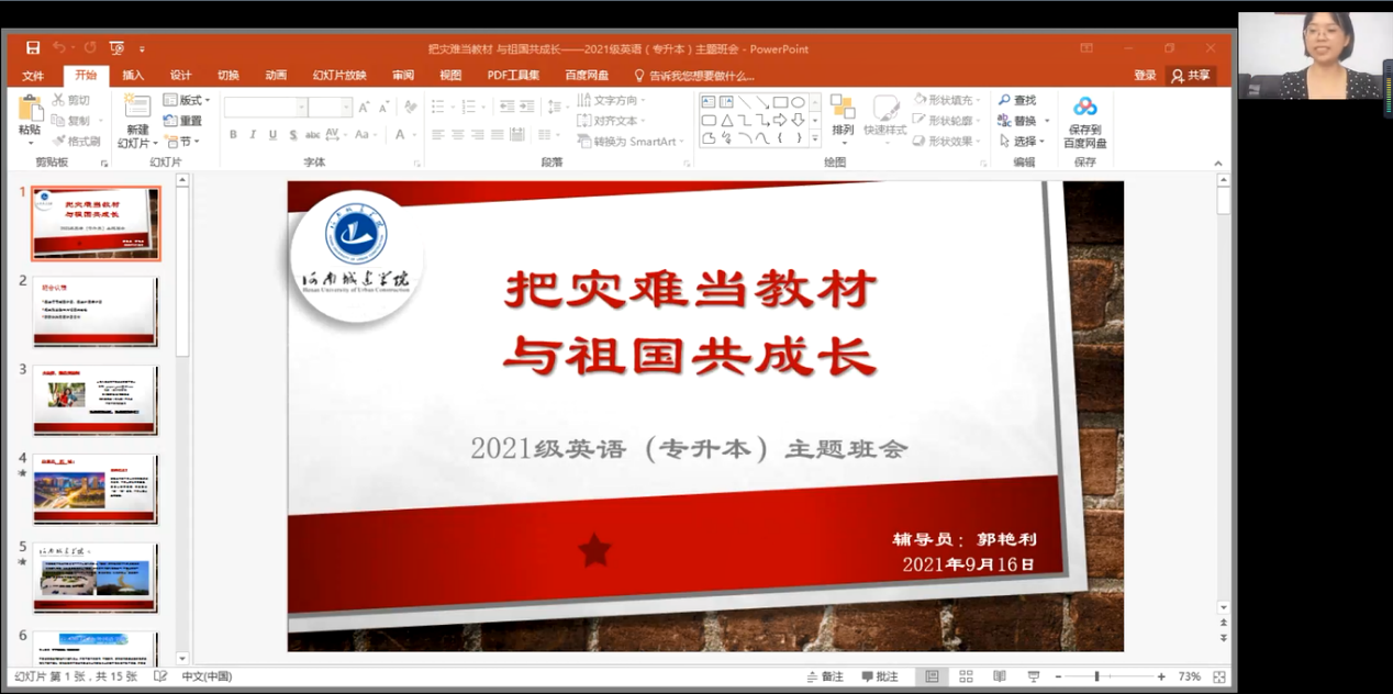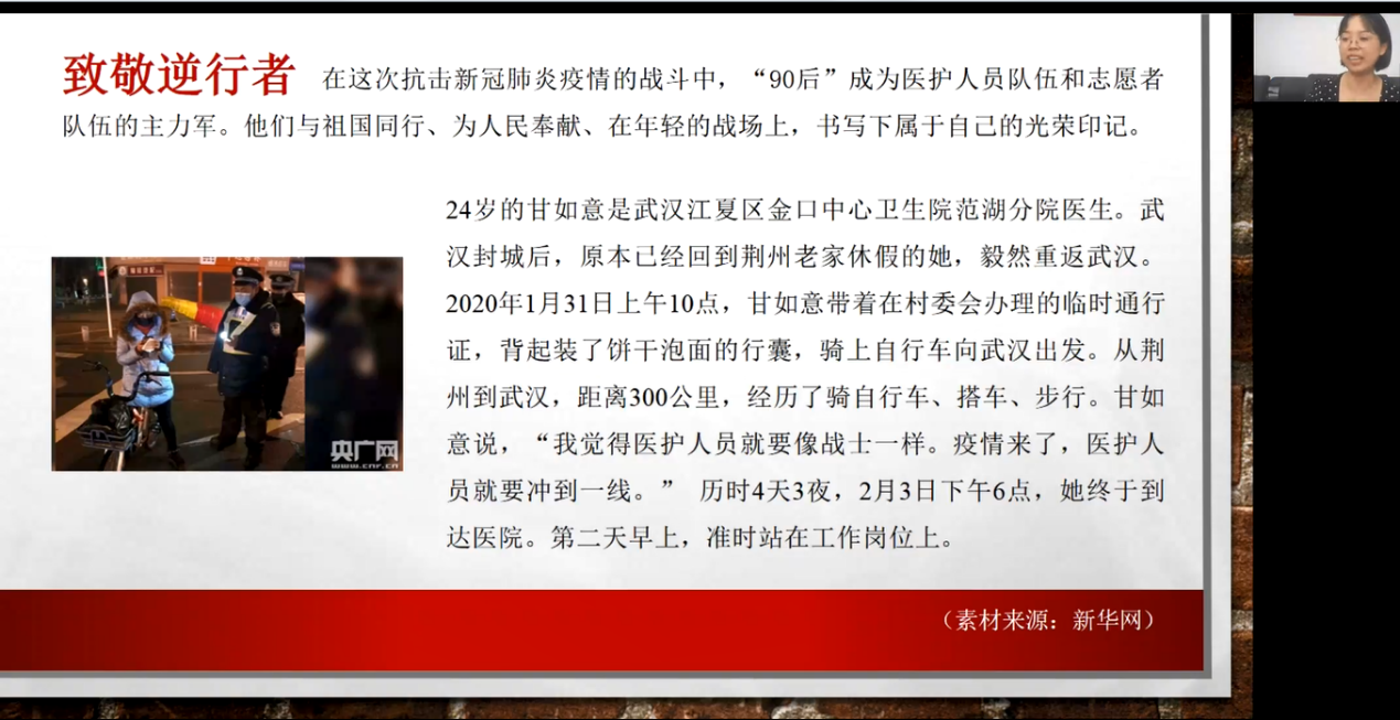 (通讯员 于瑞雪 王华夏)为宣传防汛救灾中优秀典型的先进事迹,引导青年学生客观认识疫情,做好科学防控,把灾难当教材,把困难当磨砺,在具体实践中厚植爱国主义情怀。9月16日,吃瓜网黑料爆料视频在线于钉钉直播平台组织2021级新生开展以“把灾难当教材,与祖国共成长”为主题的新生班会活动。