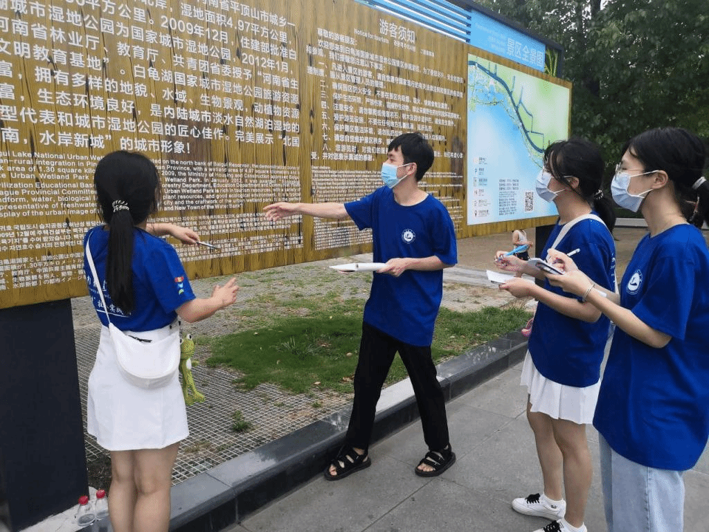 在带队教师的指导下,队员们制定了本次社会实践活动方案,包括制作调查问卷,进行采访,实地收集素材,后期进行汇总,得出结论并提出建议。团队成员中有人到国家级实地公园白龟湖查看英语介绍,有人采访乡村干部了解乡村振兴战略下带给农村新的发展机遇,有人在街头采访环卫工人,了解他们对此战略的看法及建议。