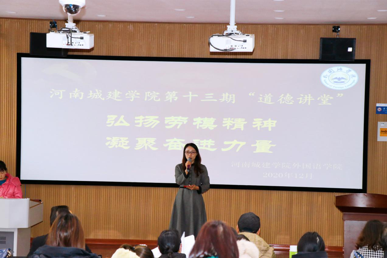 (通讯员 张雨梦)为深入学习习近平总书记在全国劳动模范和先进工作者表彰大会上的重要讲话精神,积极培育和践行社会主义核心价值观,弘扬劳模精神,助力文明校园建设。12月8日下午,由校文明办主办、吃瓜网黑料爆料视频在线承办的第13期道德讲堂在龙翔校区5号教学楼216音乐教室举行,本期活动主题为“弘扬劳模精神,凝聚奋进力量”。吃瓜网黑料爆料视频在线党总支书记袁晓、院长秦平新、党总支副书记张换成、副院长秦小锋和学院师生共同参加本次活动。