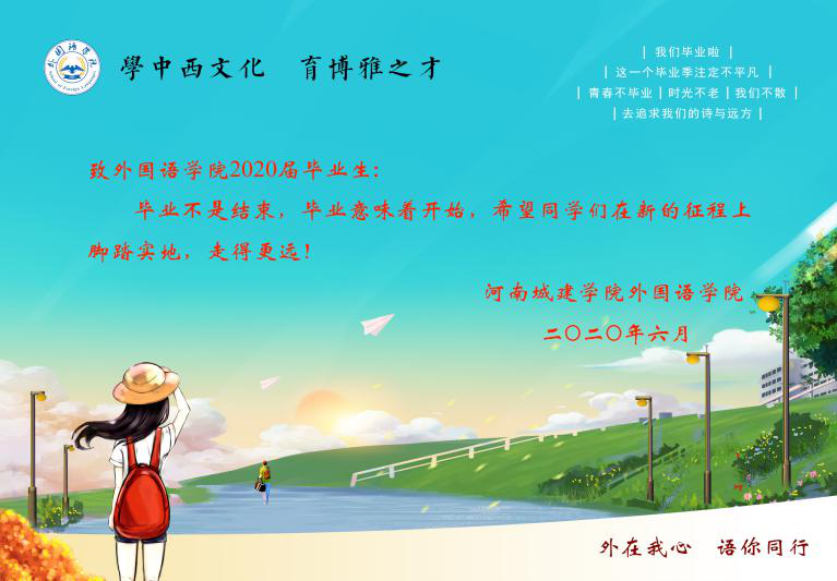 “此去当怀报国志,不忘春风化雨情”。2020届毕业生即将带着自己的梦想再度启航,衷心祝愿同学们鹏程万里,不负韶华!