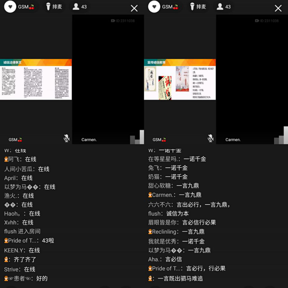 首先,各年级辅导员强调诚信的重要性并通过分享本次疫情中涌现出的诚信故事,理论宣讲,案例分析,在线问答等形式,提高同学们的诚信意识,金融安全意识,防范网络诈骗意识。第二,向同学们宣讲相关法律法规,分析在本次疫情中出现瞒报,传播虚假信息,产生严重后果的反面典型带来的巨大危害,引导同学们树立诚信意识。第三,同学们以网络为载体积极讨论,分享自己关于“诚信”的新的认识,使大学生充分认识依法如实上报身体健康状况及位置信息等相关状况的重要性和必要性,增强诚信意识和如实上报的自觉性、主动性,主动配合学校及有关单位做好疫情防控相关工作。