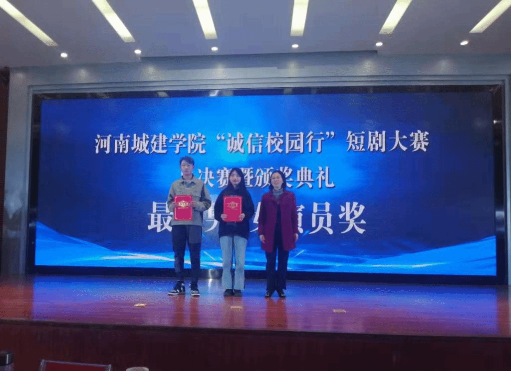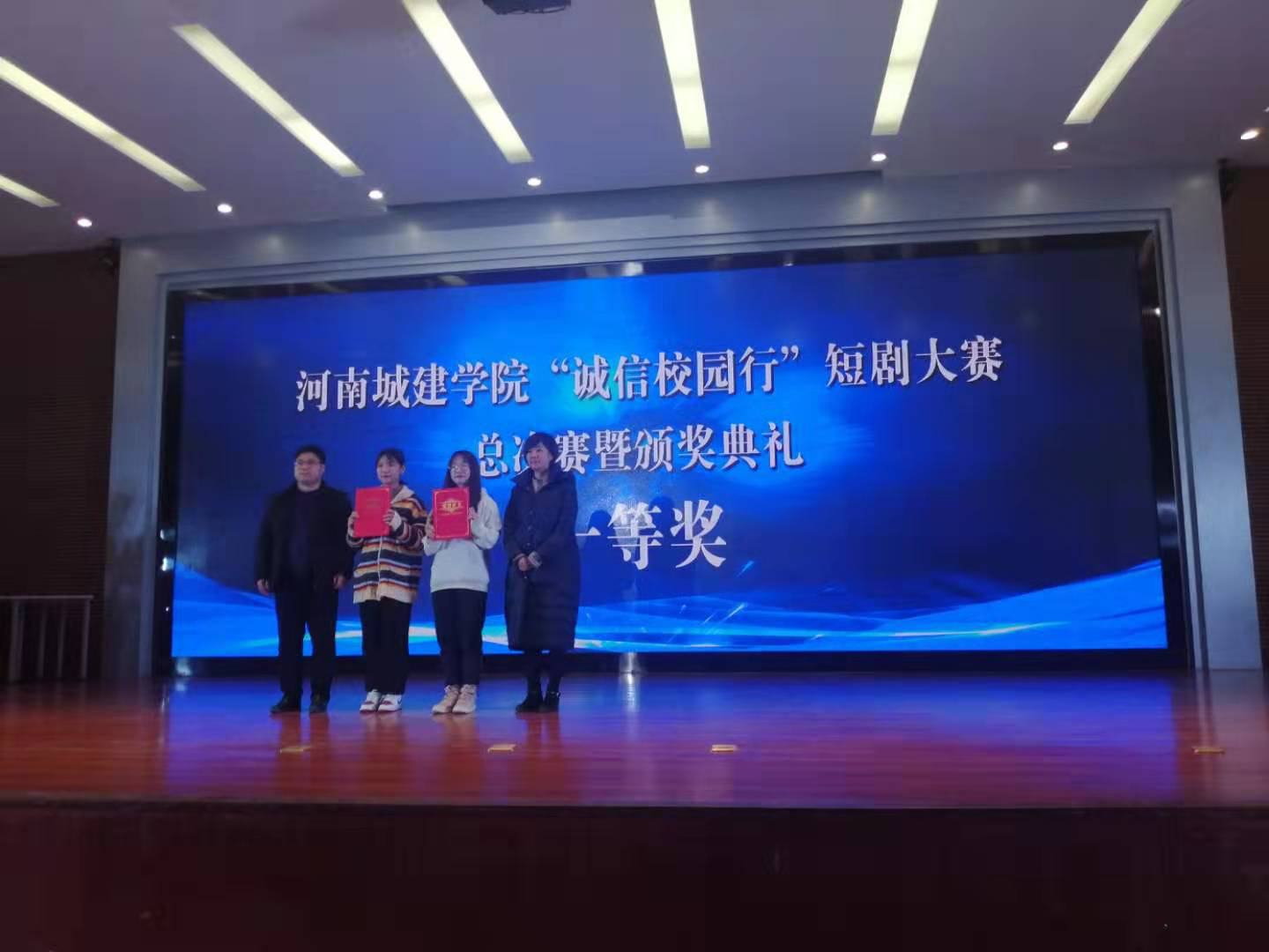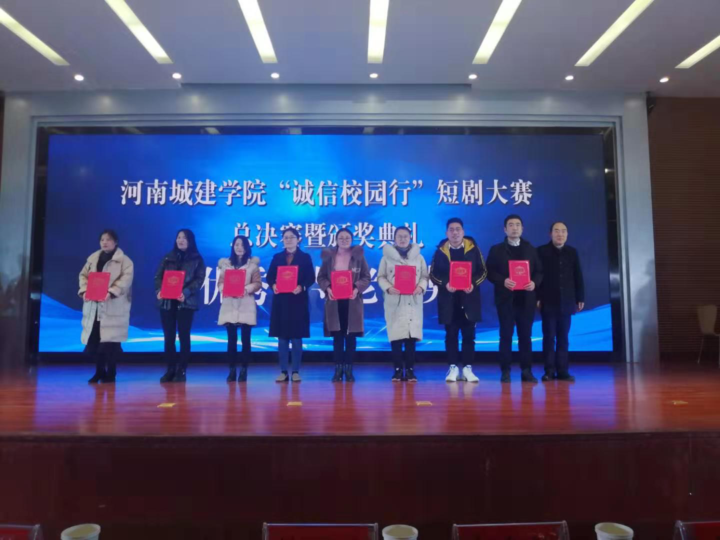 通讯员 程燕霞  赵星辰)为深入贯彻落实全省教育工作大会精神,落实立德树人根本任务,发挥资助育人功能。12月24日我校在行政楼报告厅举行了“诚信校园行”短剧大赛总决赛,我院《诚信做人》入围总决赛并以总成绩第一的成绩荣获一等奖,指导老师程燕霞获得“优秀指导老师”,演员刘金强获得“最佳男演员奖”。