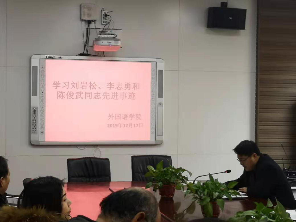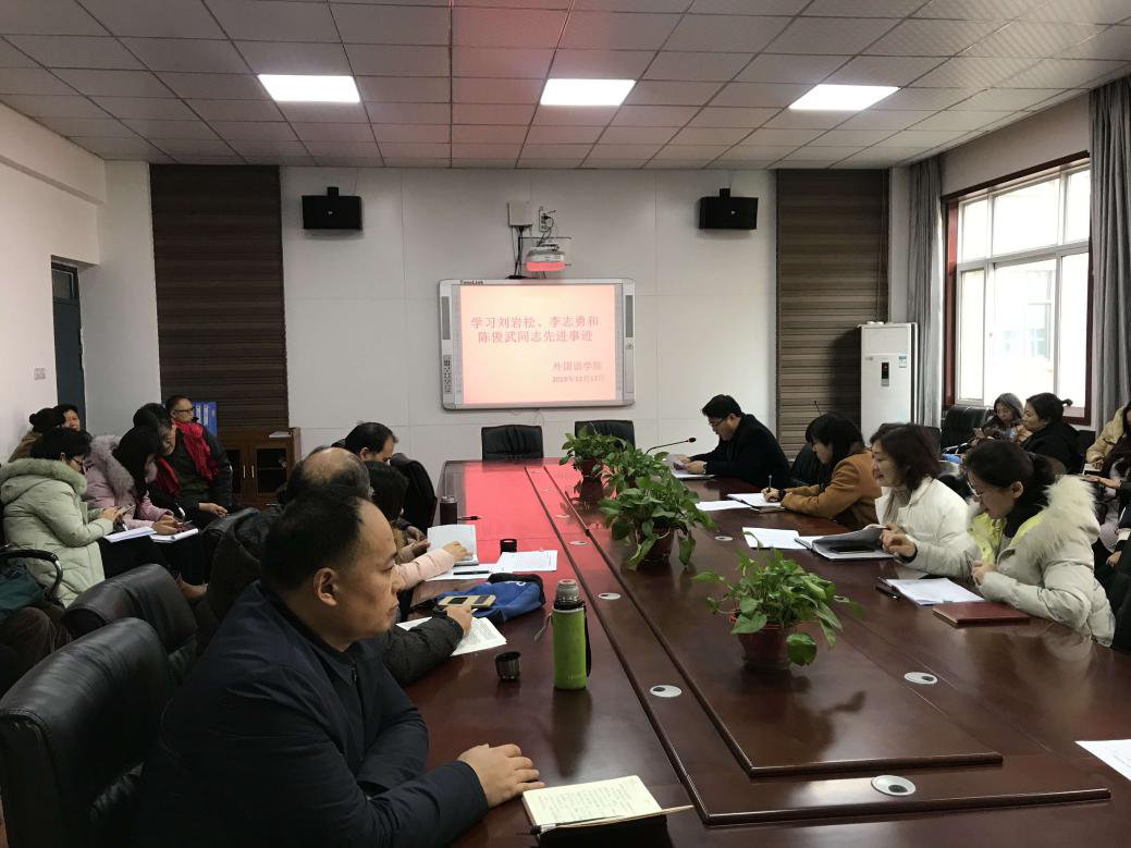 会上要求全体教师提高认识,学习刘岩松、李志勇和陈俊武同志爱岗敬业、无私奉献、一心为公、舍身忘我、为人民服务的先进事迹;要求全体教师把握精神实质,学习他们的高尚精神,学习他们立足岗位,“不忘初心、牢记使命”,将自己的事业与国家的发展紧密联系起来的品质,学习他们撸起袖子加油干,挥洒汗水竭力拼,用奋斗成就出彩人生的事迹,学习他们为党和人民事业赤城奉献,永葆共产党人的政治本色的高尚品质。