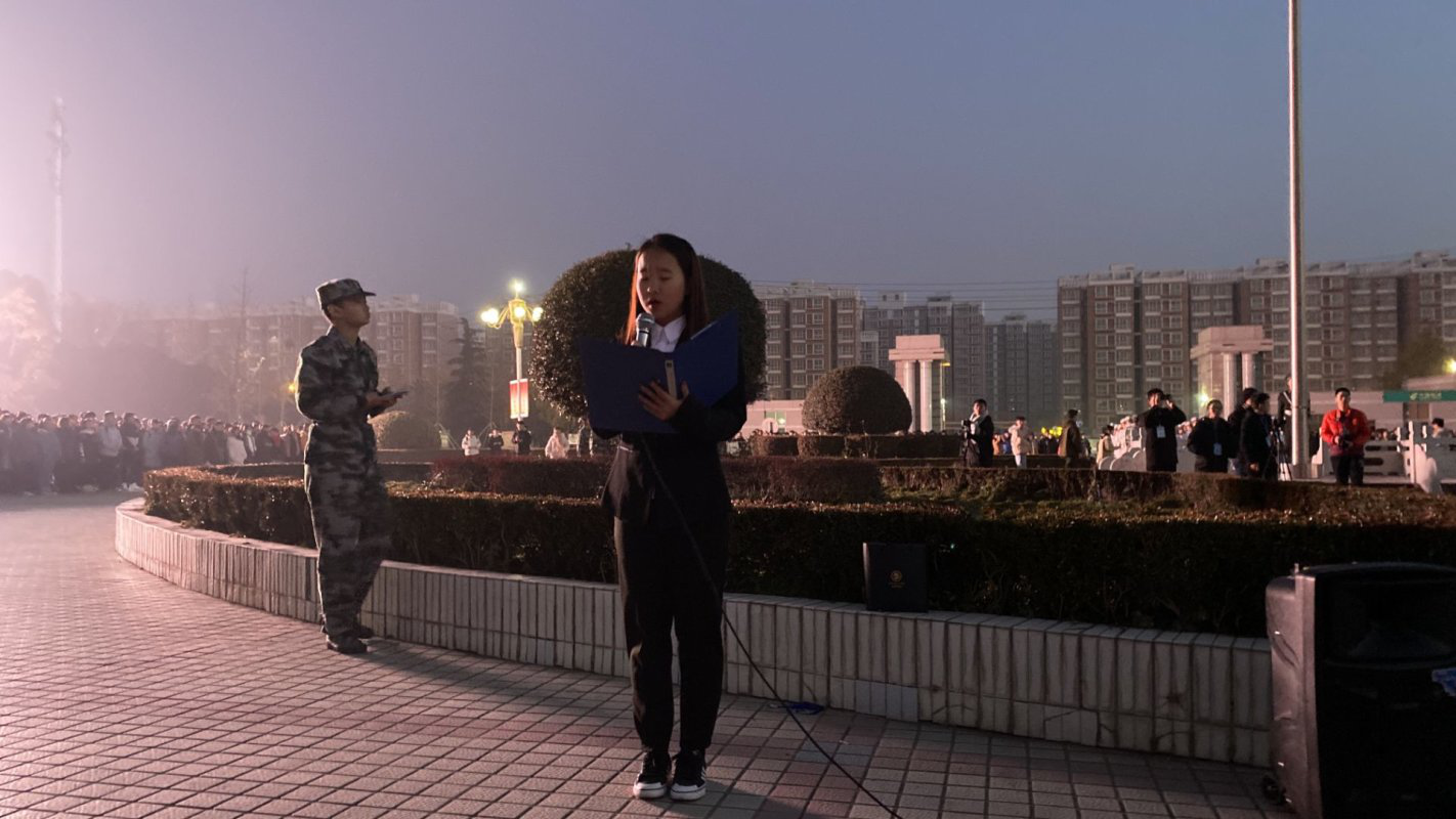 升旗仪式开始前,学院团员代表六点半在国旗广场站列整齐。七点,主持人宣布升旗仪式正式开始,在全体师生的注目礼下,英姿飒爽的国旗护卫队队员们护送鲜艳的五星红旗进场。礼行完毕,伴随着庄严的《中华人民共和国国歌》,五星红旗冉冉升起,迎风飘扬。在场的每一个人向国旗行注目礼,深怀对祖国无限的热爱和崇高的敬意。接着,2019级法学院团员代表进行国旗下演讲,表达了对万米接力运动会的期望和对运动员的鼓励。最后,全体人员进行了庄严宣誓。升旗仪式结束后,全体人员有序退场。