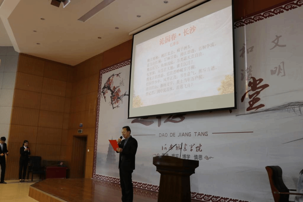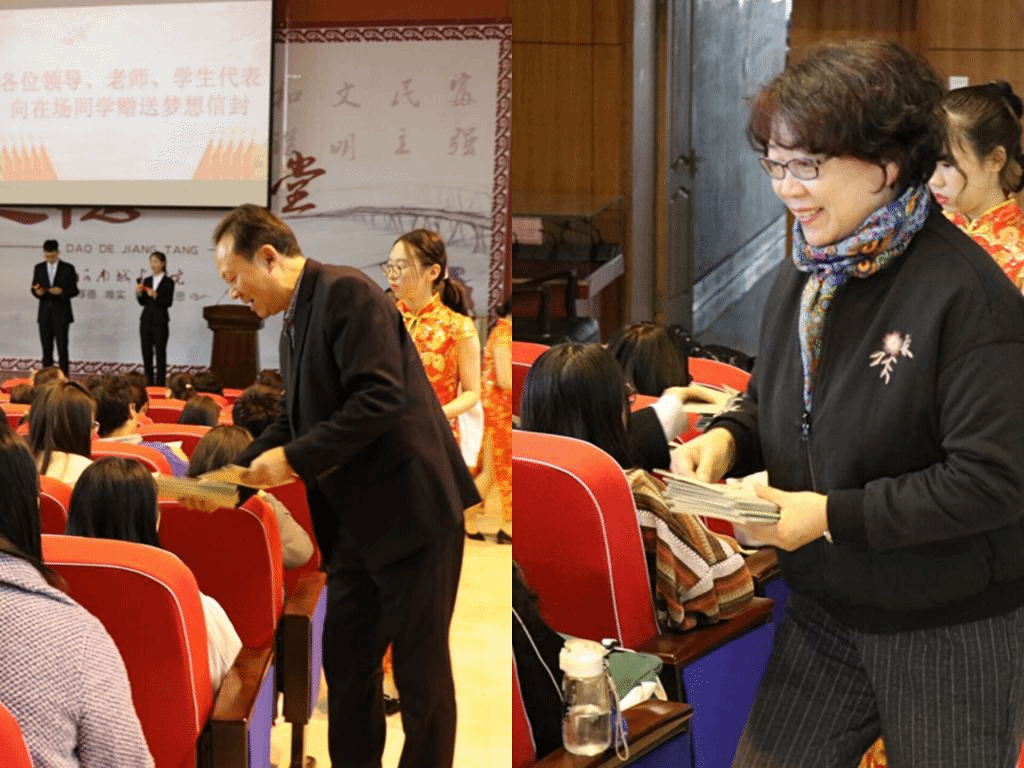 本次道德讲堂活动分为“省自身、唱歌曲、学模范、诵经典、发善心、送吉祥”六个部分。在省自身环节,主持人以“你还记得你曾经立下的远大梦想吗?今天你为你的梦想奋斗了吗?你离实现你的梦想还有多远?”三个问题引导大家追忆初心,静默自省;在唱歌曲环节,全体起立合唱“我的未来不是梦”引导学生追寻自己最初的梦想;在学模范环节,全体师生一同观看首届河南最美大学生王雅清为梦想不懈奋斗的短片,激励新时代大学生为梦想砥砺前行;在诵经典环节,秦平新带领全体师生共同朗诵毛泽东的作品《沁园春·长沙》;在发善心环节,我校2014届毕业生、河南长煜教育信息咨询有限公司法人张衡和在校生代表、2019年国家奖学金获得者赵雪静同学结合自身的经历,和大家分享自己奋斗路上的心得感悟,广大师生受益匪浅;在送吉祥环节,吃瓜网黑料爆料视频在线领导向在场的师生赠送精美的、具有学院特色的梦想信封。