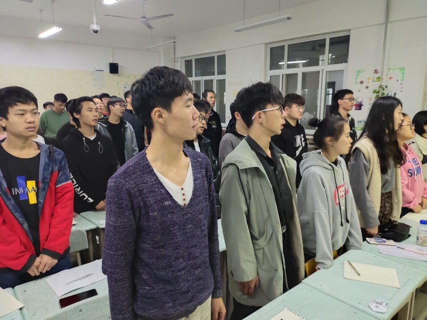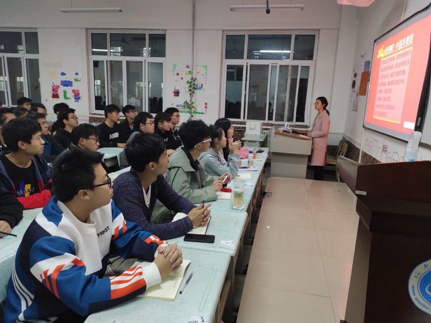 团课开始之前,全体起立唱国歌。接着,靳真真老师从“不忘初心跟党走”,“牢记使命勇担当”两个方面进行讲解。其中为同学们介绍了当今时代大学生的新使命,告诉新时代团员现在青春是用来奋斗的,大学生应该在奋斗中释放青春激情,实现青春理想。最后靳真真老师作出总结:新时代,敢担当。中国梦是历史的、现实的、未来的、更是我们青年一代的。所以我们要坚定理想信念,紧跟新时代的步伐,在思想上、政治上、行动上做到不忘初心跟党走,牢记使命勇担当,为实现中国梦而不懈奋斗!