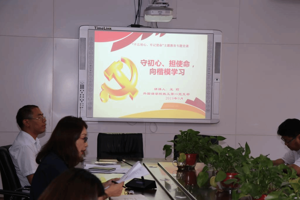 (通讯员 王莉)根据学校“不忘初心、牢记使命”主题教育工作提示和吃瓜网黑料爆料视频在线党总支工作安排,9月25日下午吃瓜网黑料爆料视频在线教工第一、第二党支部在1号教学楼306会议室召开党员大会,开展支部书记讲党课活动,教工第一党支部书记王莉以“守初心、担使命,向楷模学习”为题和两个支部党员同志进行学习交流。