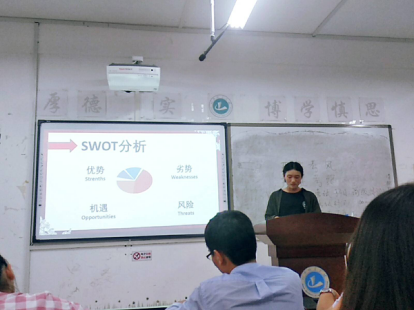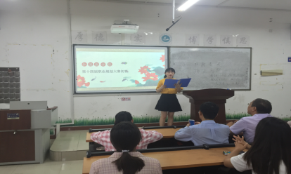 首先,进行观众和参赛人员签到,并通过抽签的方式决定比赛人员的上场顺序,随后主持人宣布比赛正式开始。选手们通过PPT向观众展示自己的职业目标,自我介绍,环境分析,实施路径和评估调整。评委在肯定选手们优点的同时,也指出了一些缺点和问题:对自己的职业目标定位不是十分清晰,自我介绍、环境分析、实施策略和评估调整等方面没有严格围绕自己的职业目标进行展开,对演讲内容详略控制的不够好,在时间把握上也有些不得当。