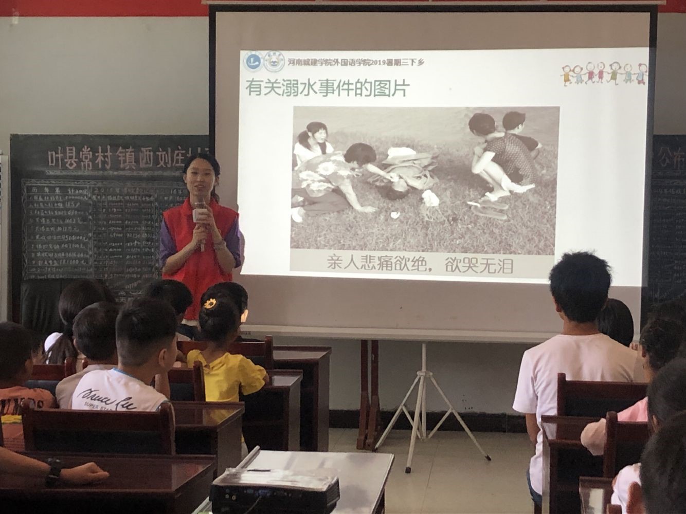 为期4天的志愿服务活动,志愿者第一天选取了几张溺水图片作为典型进行一系列安全知识讲解,强调“防溺水”对于中小学生的重要性,引起小朋友对防溺水的重视;第二天志愿者详细介绍了如何预防溺水和溺水救护方法等各类安全知识;第三天志愿者们倾心表演情景剧,用小朋友们喜闻可见的形式告诫小朋友珍爱生命,预防溺水。讲解结束之后,志愿者和小朋友们互动,讲解小朋友的困惑。第四天带队老师和同学们一块走家串户进行宣传教育,营造防溺水安全教育的良好氛围。