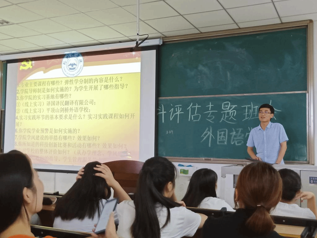 重点给同学们讲解了以下八个方面:1.外语学院各专业主要课程有哪些,弹性学分制的内容是什么;2.学院学业导师制是如何实施的,为学生开展了哪些指导;3.外语学院的实习基地有哪些;4.实习实践环节的基本要求是什么,实习实践课程如何开展;5.外语学院学业预警是如何实施的;6.学院学风建设的举措有哪些;7.大学科技创新比赛和活动有哪些;8.如何对学校进行整体评价?(包括办学理念、学风建设、第二课堂、教师的指导、学生管理服务等方面)