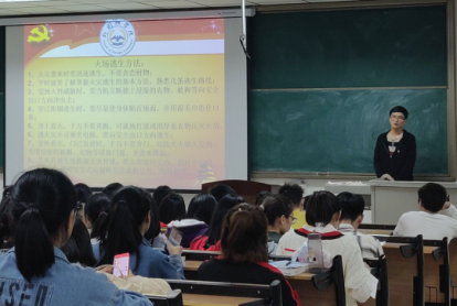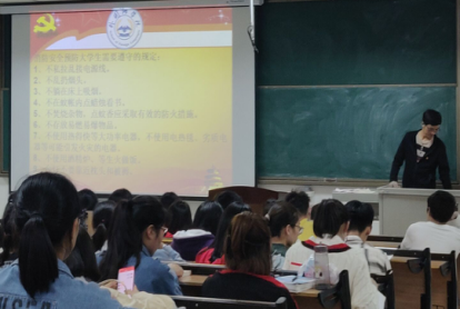 班会从宿舍楼内消防设施、大学生需要遵守的有关消防安全预防规定和火场逃生方法三方面进行讲解,帮助学生了解身边的消防设施,提醒学生在日常生活中注意消防安全、提高防火意识,并对学生进行火场逃生教育,切实增强消防安全意识。