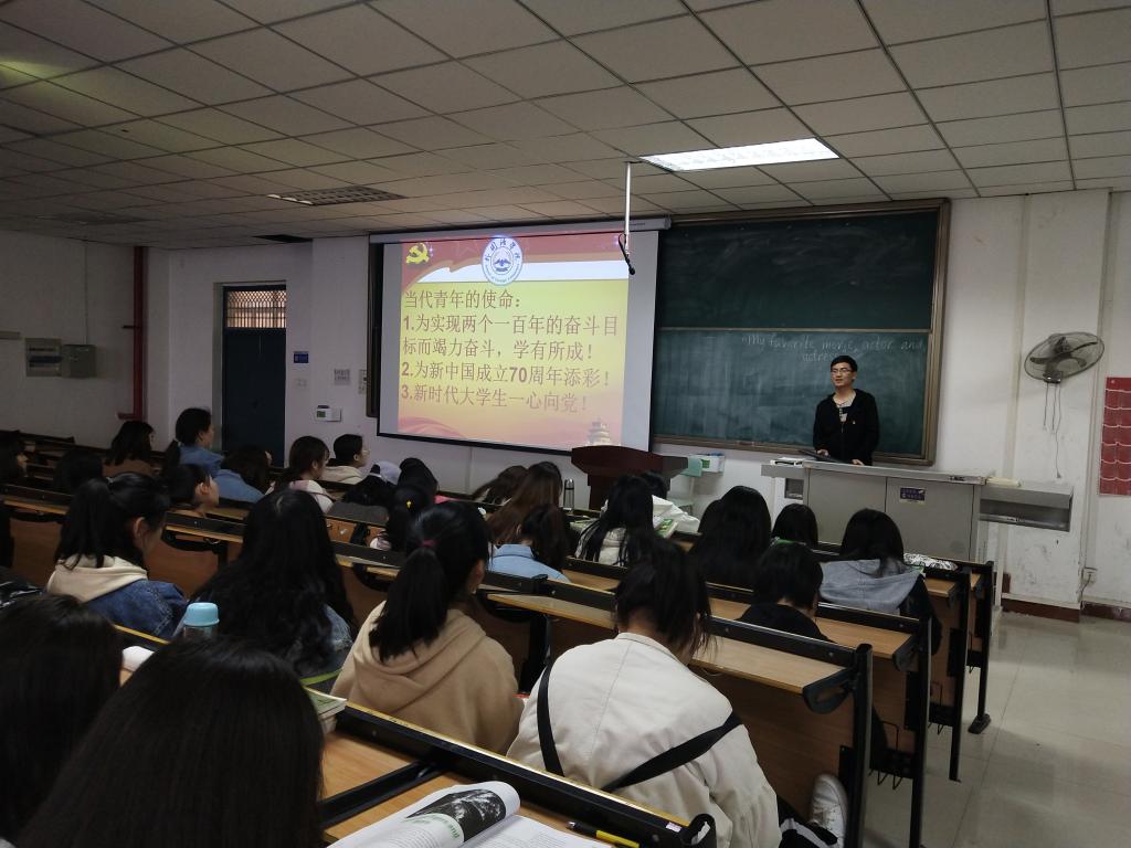 (通讯员 赵星辰)为庆祝新中国成立70周年,在新时代大学生中普及红色历史文化,弘扬红色历史传统,传承红色基因,激发新时代学子的奋斗热情,4月10日吃瓜网黑料爆料视频在线在一号教学楼326教室召开“庆祝新中国成立70周年”主题班会,辅导员赵星辰老师主持,大二全体学生参加。