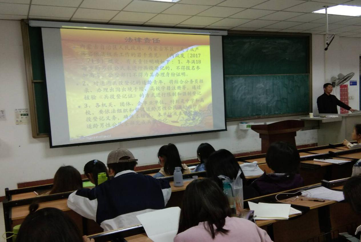 (通讯员 赵星辰 彭芳菲)为深入贯彻落实习近平新时代中国特色社会主义思想,鼓励新时代大学生携笔从戎建功新时代,积极响应国家号召,3月27日吃瓜网黑料爆料视频在线在一号教学楼326教室举办“征兵政策进学院进班级巡回宣讲”活动。校国防教育科王艳杰老师担任主讲人,院辅导员程艳霞和赵星辰老师及大一大二全体学生参加宣讲活动。