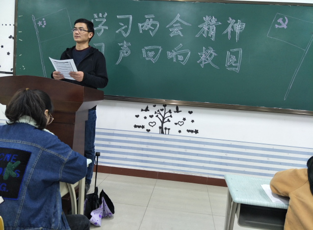 主题演讲结束之后,赵星辰老师给同学们传达了政府工作报告,习近平参加河南代表团审议时的讲话金句,鼓励同学们以“时不我待,朝夕必争”的精神面貌努力学有所成,到农村、边疆大有可为、充满希望的地方去建功新时代,不负好时光。