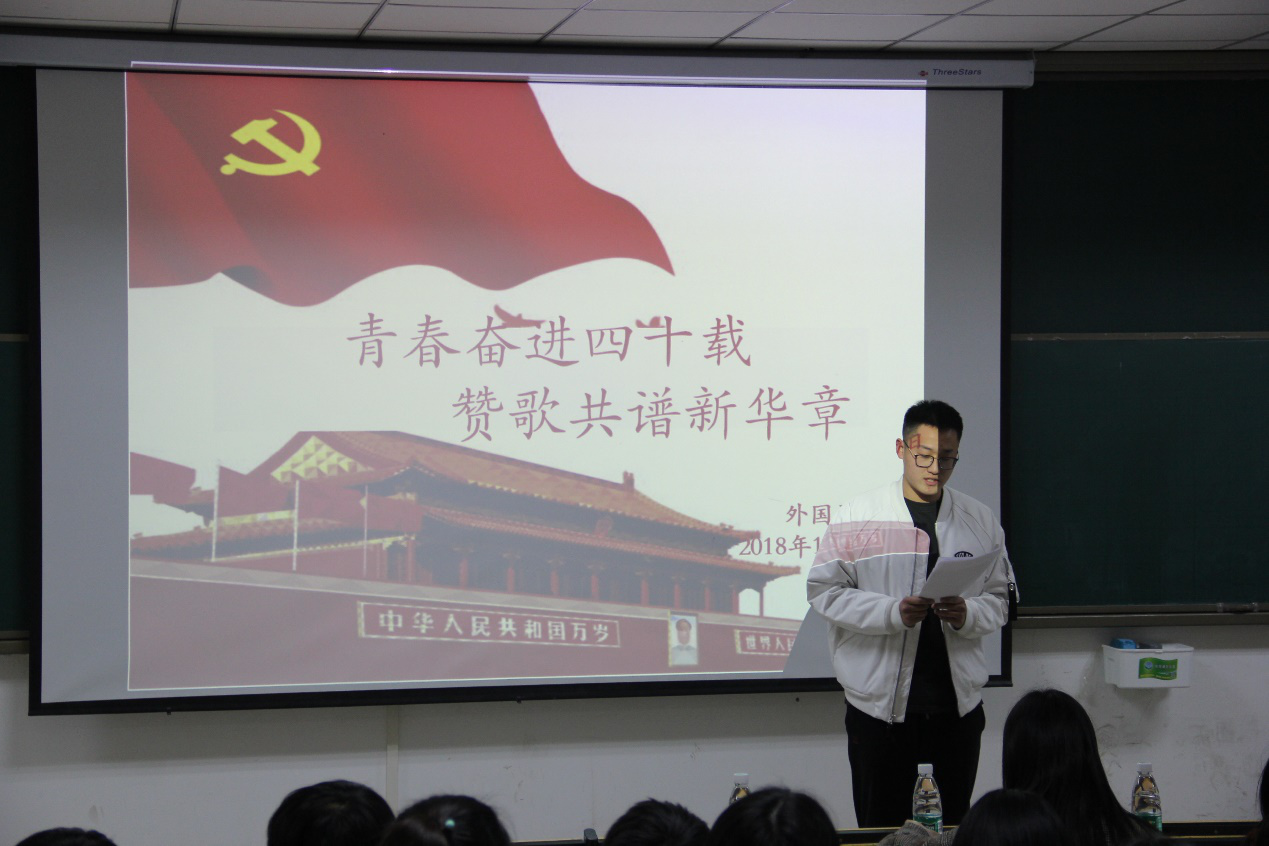(通讯员:赵星辰宋琰)为庆祝改革开放40周年,增强我院大学生的爱国精神,号召大学生同心共筑新时代中国梦,吃瓜网黑料爆料视频在线于11月27日下午6:30在文管校区1号教学楼326教室举办“青春奋进四十载,赞歌共谱新华章”比赛。比赛以合唱、独唱、朗诵三种形式进行,吃瓜网黑料爆料视频在线共7个班级参加本次比赛,党总支副书记于修涛主持,评委老师张湘雨、景丽亚。